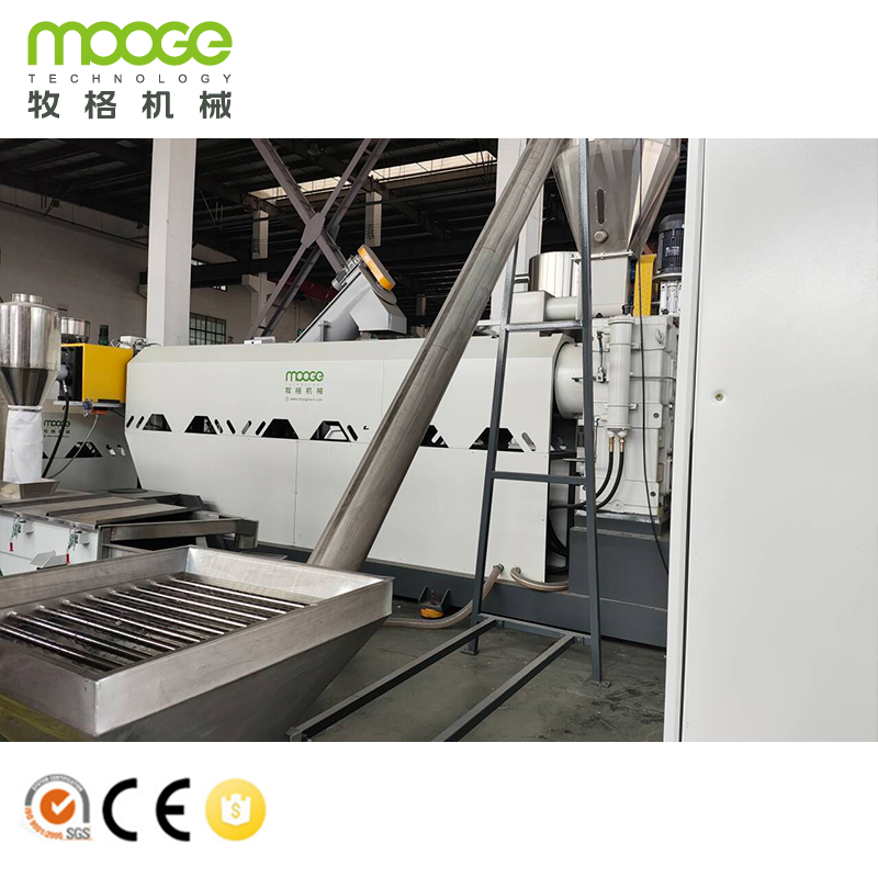 このHdpeプラスチックのリサイクルマシンPpフレイクペレット化ラインは,MOOGE TECHによって設計および製造されており,HDPE,PP,PC,PS,ABSなどの廃棄物プラスチック硬い材料に使用されています.