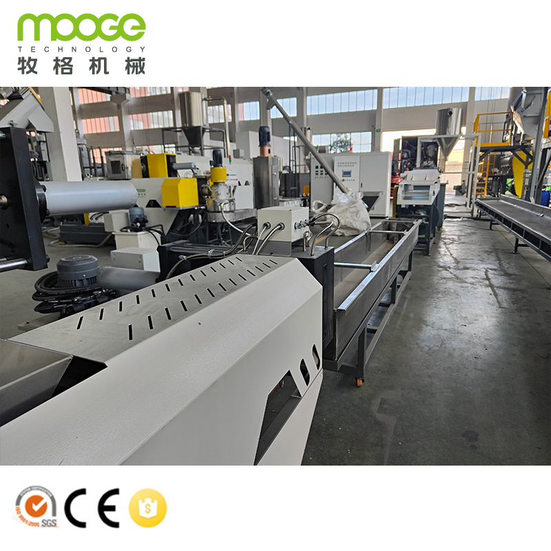 この廃棄物Pp PeリサイクルプラスチックPETフレークペレット化機械は,MOOGE TECHによって設計および製造されており,HDPE,PP,PC,PS,ABSなどの廃棄物プラスチック硬い材料に使用されています.